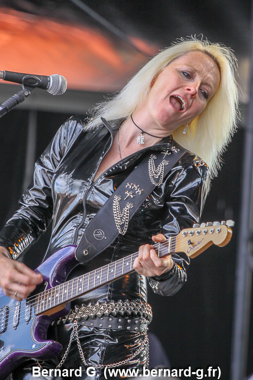 Le heavy metal band féminin originaire du Royaume-Uni: les GIRSCHOOL; vous les apercevez sur cette photothèque sur la scène du Hellfest en 2009. Groupe constitué exclusivement de femmes, il est connu dans toute l’Europe et ont joué aux côtés de Lemmy.